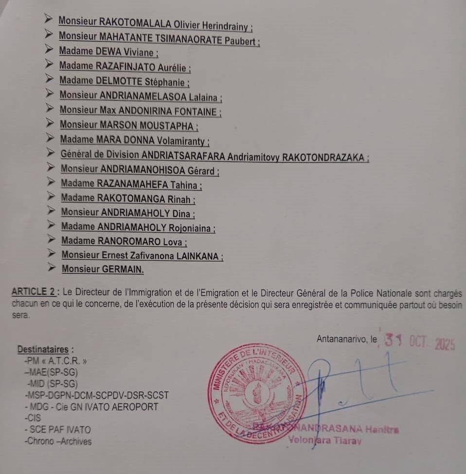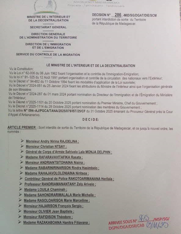 Le 31 octobre 2025, le ministère de l’Intérieur a enfin frappé un grand coup en publiant un arrêté interdisant aux anciens dirigeants de quitter la Grande Île. Une mesure attendue depuis longtemps, tant les scandales et les soupçons d’abus de pouvoir se sont accumulés au fil des années. En tête de liste figure l’ex-président français de Madagascar, Andry Rajoelina, ainsi que ses 34 anciens ministres.