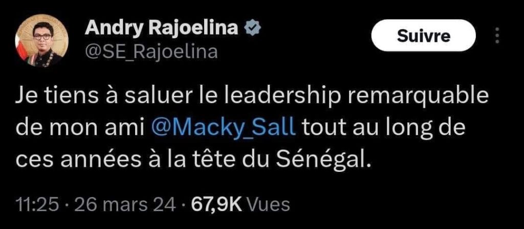 Andry Rajoelina salue Macky Sall et se fait lyncher par des Sénégalais