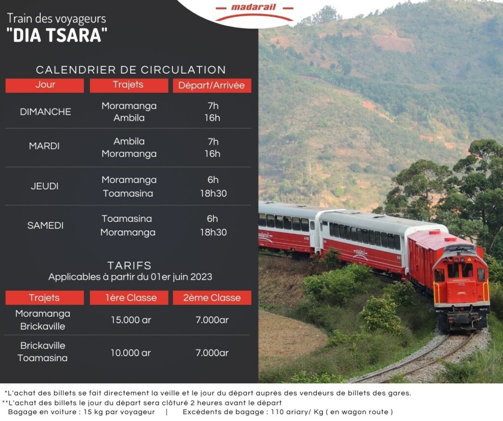 Une portion de ligne de train est désormais rouverte aux voyageurs à Madagascar. Il s’agit de la liaison Moramanga – Brickaville – Ambila – Toamasina (TCE). Pour rappel, l’acheminement de marchandises a toujours fonctionné sur cet axe mais le transport de personnes avait cessé depuis 4 ans. Le nouveau train pourra accueillir 280 voyageurs avec un wagon première classe et trois de seconde classe.